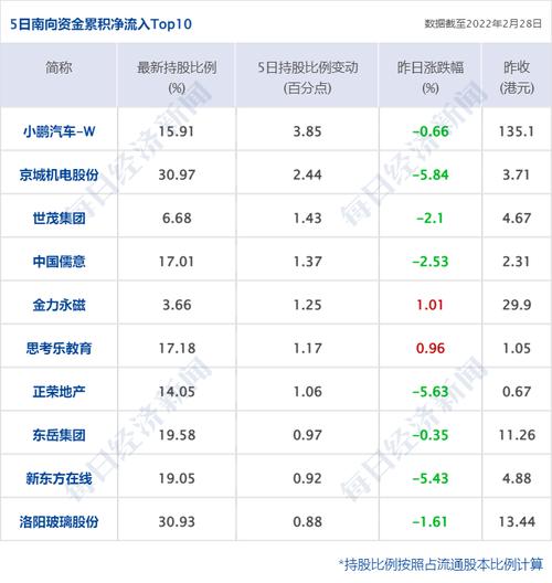 2月28日,南向资金净买入8.83亿港元。南向资金成交活跃个股榜单中,净买入个股共9只,金额最多的是比亚迪股份(1211.HK,收盘价:237.4港元),净买入2.703亿港元;净卖出个股共6只,金额最多的是香港交易所(0388.HK,收盘价:377.6港元),净卖出2.803亿港元。