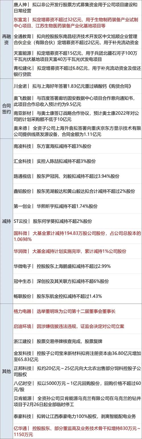 NO.1 格力电器:2月28日下午,公司召开临时股东大会,现年68岁的董明珠再次获任,也意味着她将在格力电器继续执掌3年。董明珠在股东大会上透露,未来格力电器也有分拆上市旗下板块的计划,比如装备等板块。此外,对于外界议论较多的手机业务,董明珠表示,“我还是要坚持做手机,相信坚持有收获”。(每日经济新闻)