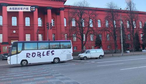 第一批留学生从基辅大学红楼出发。图片来源:央视新闻