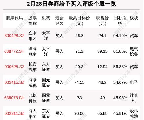3丨整点投资 | 2月28日101只个股获券商关注,立中集团目标涨幅达94.19%