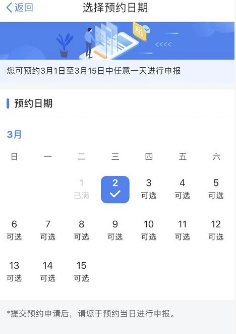 每经小编(微信号:nbdnews)注意到,个税APP显示,目前3月1日这一天已经约满了,3月2日以后还可以预约。