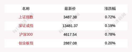 截至北京时间14:30,上证指数报3487.38点,涨0.72%,深证成指报13481.37点,涨0.19%,沪深300报4617.54点,涨0.78%,创业板指报2887.08点,涨0.20%