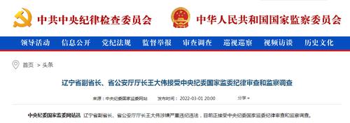 据中央纪委国家监委网站3月1日消息,辽宁省副省长、省公安厅厅长王大伟涉嫌严重违纪违法,目前正接受中央纪委国家监委纪律审查和监察调查。