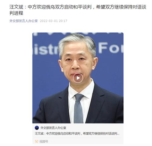据“外交部发言人办公室”消息,在3月1日外交部例行记者会上,总台央视记者提问:据报道,28日,俄乌代表团在白乌边境城市戈梅利举行谈判。中方此前一直表示希望双方通过和平谈判寻求政治解决乌克兰问题,对当前谈判形势有何评论?