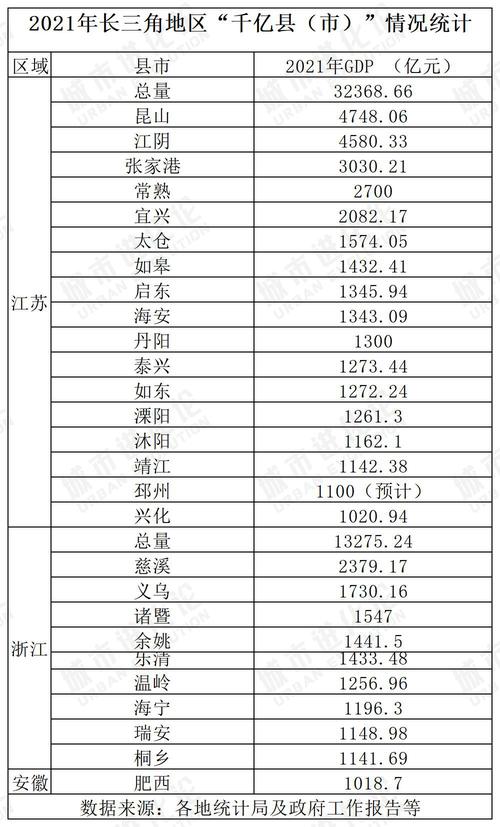除此之外,常熟(江苏)、慈溪(浙江)、宜兴(江苏)也分别达到2000亿元阶段,跟后来者义乌(浙江)、太仓(江苏)、诸暨(浙江)、余姚(浙江)一起构成长三角“千亿县”前10位。