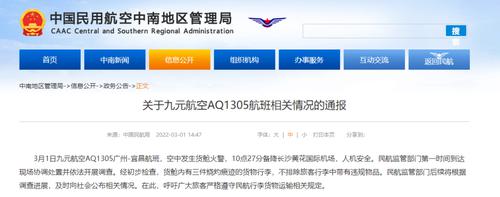 NO.8 据中国民用航空中南地区管理局网站通报, 3月1日九元航空AQ1305广州-宜昌航班,空中发生货舱火警,10点27分备降长沙黄花国际机场,人机安全。经民航监管部门初步检查, 货舱内有三件烧灼痕迹的货物行李,不排除旅客行李中带有违规物品。