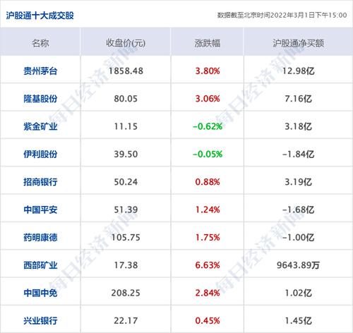 北向资金3月1日净买入32.76亿元。贵州茅台、隆基股份、赣锋锂业分别净买入12.98亿元、7.16亿元、4.34亿元。东方财富净卖出额居首,金额为7.69亿元。
