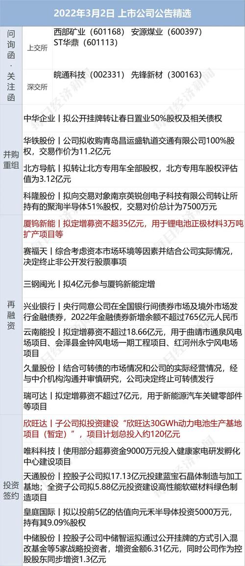NO.5 正邦科技:3月1日上午,市场上流传出一则关于“正邦申请破产,江西省粮油接手”的传闻。记者从正邦科技内部人士处获悉,公司正在与江西省国资旗下某公司进行接洽,但该公司并非江西省粮油集团。据悉,作为养猪大户的正邦科技2021年预亏近200亿元,目前正通过变卖资产回笼资金,拟将其持有的8家饲料公司的部分或全部股权转让给另一家上市公司大北农。(每日经济新闻)