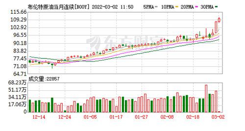 据新华社,由于乌克兰局势和西方国家对俄罗斯制裁升级,市场担忧俄罗斯油气供应存在中断风险,国际原油期货价格2月28日显著上涨,伦敦布伦特原油期货主力合约价格自2014年9月8日以来首次收于每桶100美元上方。