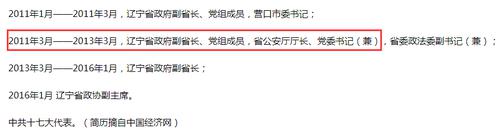 2017.02辽宁省政府副省长、党组成员,省公安厅党委书记、厅长、督察长(兼)
