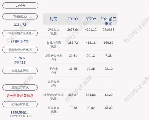 1. 万科A近30日内北向资金持股量增加919.80万股,占流通股比例增加0.10%;