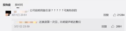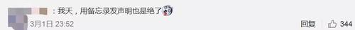 可以看到,上述回应以备忘录形式发布。有网友在该条微博下评论称,“公司说明用备忘录?”“还真是第一次见,比明星声明还敷衍”“看到备忘录属实绷不住了”。