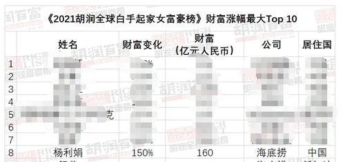 杨利娟在海底捞从最普通的服务员起步,1998年接管简阳海底捞第一家老店,成为店长。2018年,海底捞在港交所上市,杨利娟进入大众视野。去年5月,杨利娟曾以 160亿元人民币的财富 进入《2021胡润全球白手起家女富豪榜》前50名。