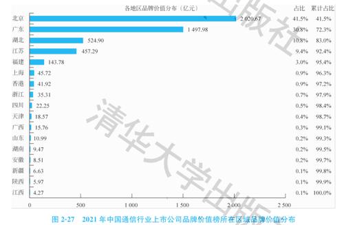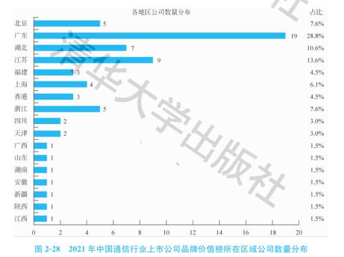 在2021中国通信行业上市公司品牌价值榜中,66家公司来自17个地区。