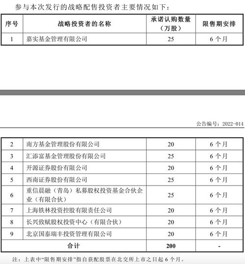 公告进一步显示, 克莱特此次发行战略配售发行数量为 200.0000 万股,占超额配售选择权全额行使前本次发行数量的20.00%,占超额配售选择权全额行使后本次发行数量的 17.39%。