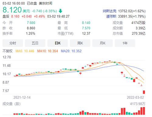 截至美东时间3月2日收盘,爱立信股价大跌8.35%,报收8.12美元,总市值270.39亿美元。自2月16日该事件被曝出以来,爱立信美股在10个交易日内已经下跌了近35%,市值蒸发约144亿美元,折合人民币约900亿元。