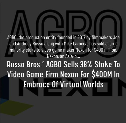 投资的触手也不局限于游戏公司。据AGBO官网披露,Nexon于今年1月初向美国知名导演组合罗素兄弟创办的影视娱乐公司AGBO注资4亿美元,换取了后者38%的股份。罗素兄弟曾执导《美国队长3:内战》《复仇者联盟3:无限战争》《复仇者联盟4:终局之战》等好莱坞大片。