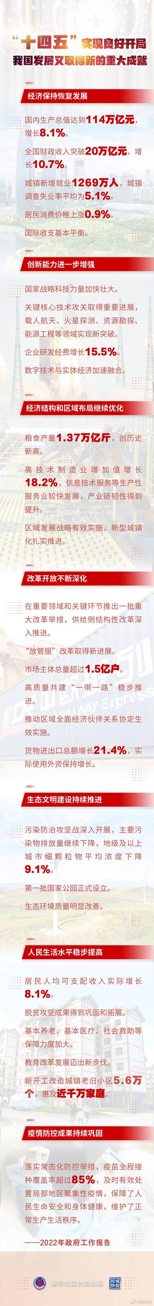 一年来,面对复杂严峻的国内外形势和诸多风险挑战,全国上下共同努力,统筹疫情防控和经济社会发展,全年主要目标任务较好完成,“十四五”实现良好开局,我国发展又取得新的重大成就。