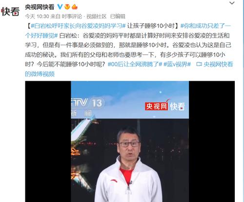 据“央视网快看”微博号2月9日消息,白岩松呼吁家长像谷爱凌妈妈学习,让孩子睡够10小时。
