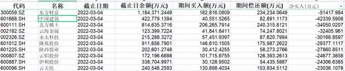 东方财富、中国建筑、北方稀土、云海金属、永太科技、隆基股份、陕西煤业、云铝股份、伊利股份、云天化为融资资金净流出最多的个股。