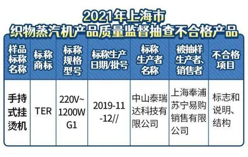 中新经纬3月7日电 据“上海市场监管”微信号消息,近期,上海市市场监督管理局对本市生产、销售的挂烫机产品质量进行了监督抽查,经检验,55批次产品中1批次不合格,不合格项目为标志和说明、结构。