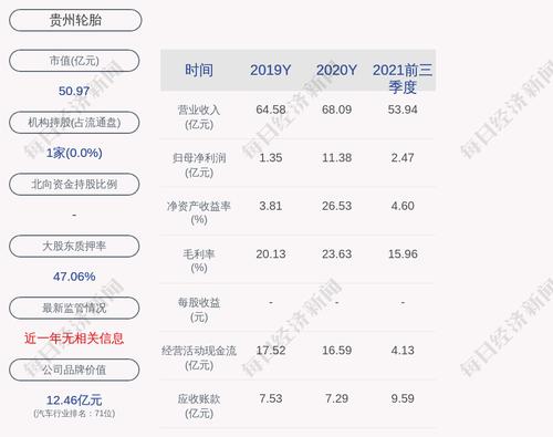 每经AI快讯,贵州轮胎(SZ 000589,收盘价:5.33元)3月7日晚间发布年度业绩报告称,2021年营业收入约73.39亿元,同比增加7.79%;归属于上市公司股东的净利润盈利约3.7亿元,同比减少67.52%;基本每股收益盈利0.4元,同比减少72.79%。分配方案为:每10股派发现金红利1元(含税)、不送红股、以资本公积金向全体股东每10股转增2股。