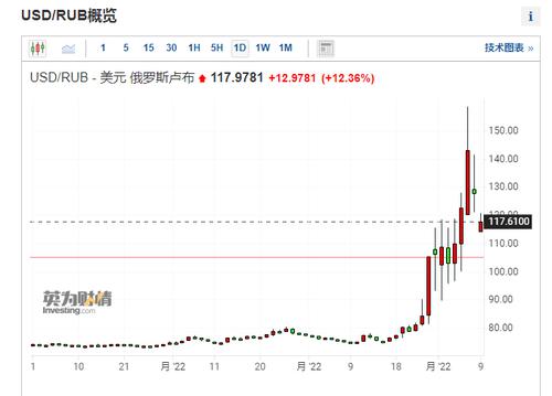 从2月底开始,卢布汇率持续下跌,今年2月23日,美元对卢布汇率为78.84,截至3月9日发稿,美元对卢布汇率涨到117.8。
