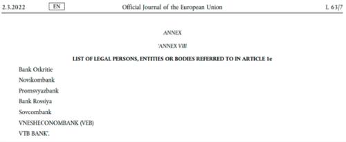 据央视新闻,当地时间3月2日,据欧盟官方公报显示,欧盟决定将7家俄罗斯银行排除在环球银行间金融通信协会(SWIFT)支付系统之外。自3月12日起,这7家俄罗斯银行将被排除出SWIFT支付系统。