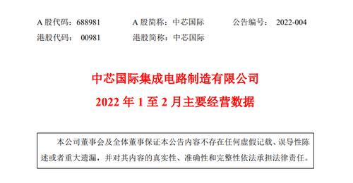 随后,3月8日,中芯国际公告,2022年1至2月,经中芯国际集成电路制造有限公司(以下简称“公司”)初步核算,公司实现营业收入12.23亿美元左右,同比增长59.1%;实现归属于上市公司股东的净利润3.09亿美元左右,同比增94.9%。