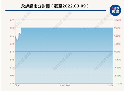 3月9日,永辉超市开盘即涨超4%,随后股价一路拉升至10点左右触及涨停,最终,今日(9日)永辉超市涨停收盘,报3.66元/股,总市值332.1亿元。而在此前一个交易日,永辉超市股价还跌超4%。