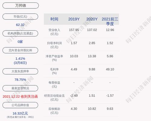 1. 万邦德近30日内北向资金持股量增加182.76万股,占流通股比例增加0.20%;