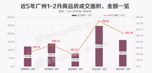 根据广州市住建局数据,今年1-2月广州商品房网签面积为162.33万平方米,同比下降34.6%;成交金额545.79亿元,同比下降25.9%。