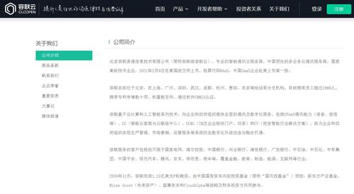 官网显示,容联云(北京容联易通信息技术有限公司)是一家智能通讯云服务商,2021年2月9日在美国纽交所上市,股票代码RAAS,中国SaaS企业赴美上市第一股。
