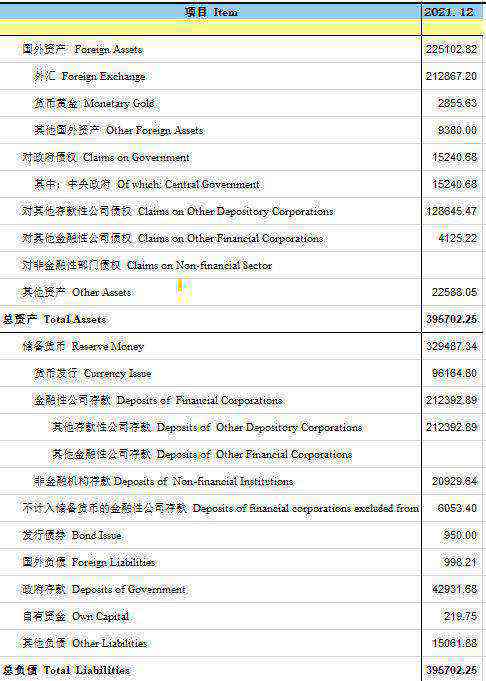 这里存在一个让人难以理解的地方是,央行已经是最后的银行,是最后的账户管理人或者记账人,央行赚的钱即利润留存在资产负债表上怎么做分录?我们看下图中国央行资产负债表的负债端,没有看到一般企业资产负债表科目里的“所有者权益”及其下面的留存利润等。说到底,政府部门、商业银行的账可以记在央行的账簿上,但央行已经没有更高一级的母行账簿安放利润,所以商业银行再贷款利息及其它收入形成的未分配利润记在哪呢?我们认为只能记在负债端的“政府存款”的某个子存款账户里。因为说到底,央行也是中央政府的一个部门,但她又是最高一级的会计和出纳,是“根账簿”,所以她赚的未分配利润应该是记在下图“政府存款”的总科目里,但是会有一个特别的账户进行说明。等未分配利润和待上缴利润上缴后,这些钱就可能变成了政府存款里的“中央预算收入”之类的项目。实际上,央行也是财政的一部分,在会计处理方面肯定还有很多账本和勾稽关系。但是我们看到,央行利润上缴国库,不会影响央行资产负债表的变化。