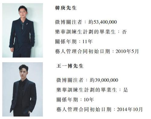 在招股书中,乐华娱乐披露了部分知名签约艺人的资料并称公司与艺人签约的期限在5-15年不等,通常包括自动续约的条款。