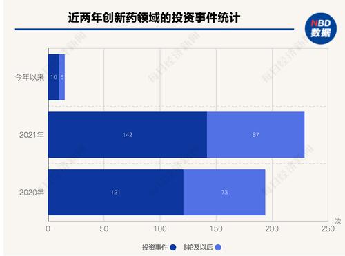 整个2020年,发生在创新药领域的投资事件有121次,其中B轮及以后的有73次;2021年一共发生了142次,B轮及以后的87次,火热程度可见一斑。而到了今年,截至3月14日,这个领域一共只有10次投融资事件发生,呈现断崖式下滑。