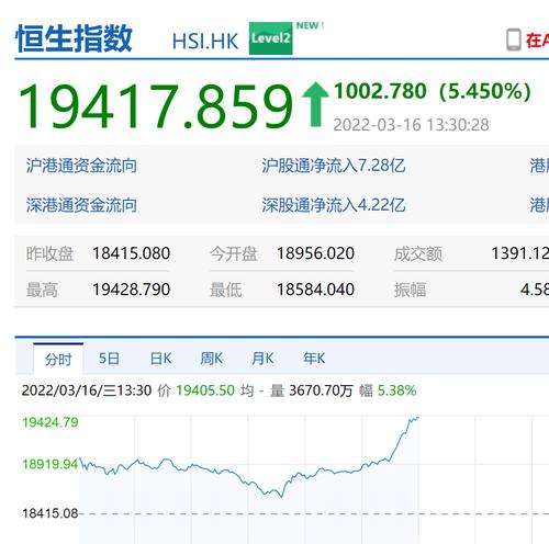 恒生指数午后涨幅进一步扩大,涨幅超5%。