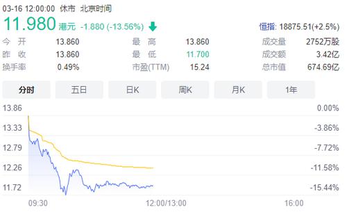 受此影响,3月16日,康师傅股价大跌,截至中午休市,康师傅控股股价报11.98港元,跌13.56%,总市值674.69亿元。