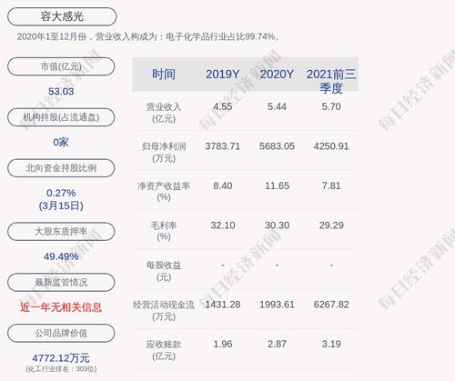 每经AI快讯,容大感光(SZ 300576,收盘价:27.33元)3月16日晚间发布公告称,截至2022年3月15日,本次减持计划时间已过半,公司监事魏志均先生未通过任何方式减持公司股份。