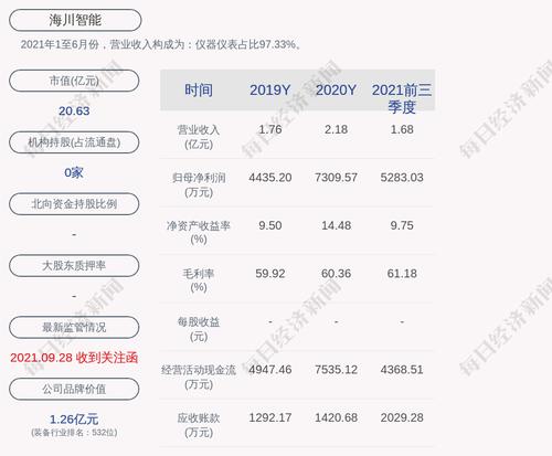 2021年1至6月份,海川智能的营业收入构成为:仪器仪表占比97.33%。