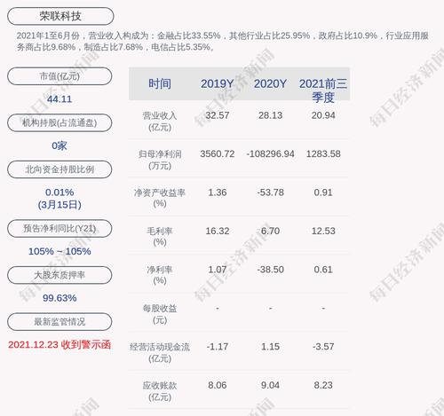 每经AI快讯,荣联科技(SZ 002642,收盘价:6.61元)3月16日晚间发布公告称,截至本公告日,王东辉累计质押股数约为7941万股,占其所持股份比例为98.69%。吴敏累计质押股数为0股,占其所持股份比例为0%。