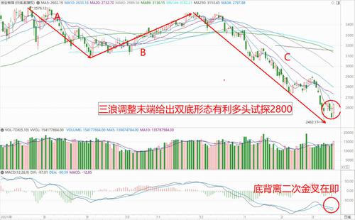 沪指看,C浪杀跌末端的探底回升中阳线,为小分时五浪杀跌结构完成的深V回升,虽成交量略有萎缩,MACD指标弱势下行结构未改,但极端杀跌后的5日线乖离修复进行中;创业板指数放量上攻阳线反包昨日调整阴线,彰显C浪末端买盘承接强,结合MACD指标底背离情况下即将形成二次金叉,预期后市试探并突破2800点是大概率事件;结合深成指的单底回升放量上攻至12000点、科创50指数金针探底即将摆脱5日线压力的运行情况,预期“普涨+大涨”后或有分化和折返的二次探底和磨底,但继续演绎之前的极端恐慌杀跌概率低。