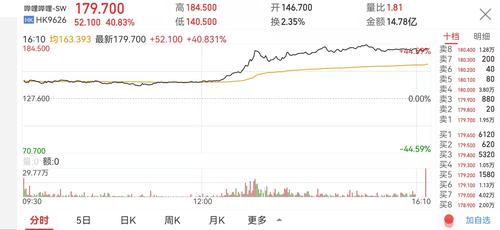 截止3月16日港股收盘,哔哩哔哩股价大涨40.83%,报179.7港元/股。