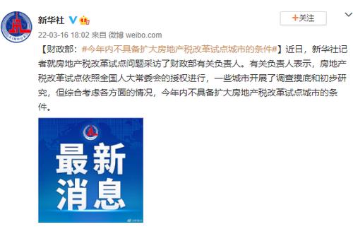 当天财政部也发布消息称,综合考虑各方面的情况,今年内不具备扩大房地产税改革试点城市的条件。
