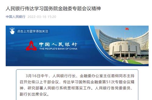 3月16日,国务院金融稳定发展委员会召开专题会议后,16日中午,人民银行行长、金融委办公室主任易纲同志主持召开处级以上干部会议,传达学习国务院金融委第51次专题会议精神,研究部署人民银行系统贯彻落实工作。人民银行各党委委员、副行长出席会议。