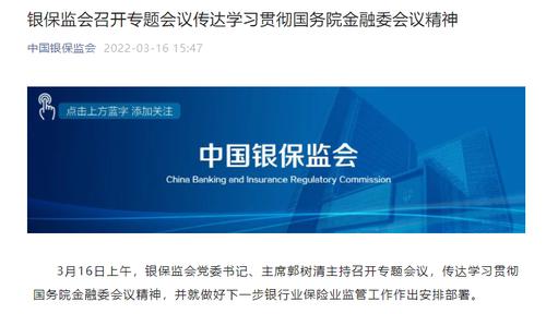 3月16日上午,银保监会党委书记、主席郭树清主持召开专题会议,传达学习贯彻国务院金融委会议精神,并就做好下一步银行业保险业监管工作作出安排部署。