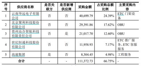 而华远电子在2019年也成为了黔通智联的第一大供应商,黔通智联向华远电子采购ETC门架设备,采购金额总计4.07亿元。