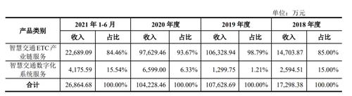 而对于未来,黔通智联表示,将希望放在智慧高速公路建设、数据赋能、ETC衍生服务业务上。但是,在报告期各期间内,黔通智联ETC衍生服务业务销售收入并未有明显突破。而在2020年和2021年上半年,智慧交通数字化系统服务的销售收入分别为6599万元和4175.59万元,能否成为贡献黔通智联未来营收增长的主力,仍待观察。