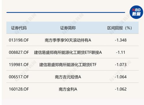 而在下跌方面,今日仅有5只基金净值跌幅超1%,南方季季享90天滚动持有A下跌了1.35%,跌幅最大。