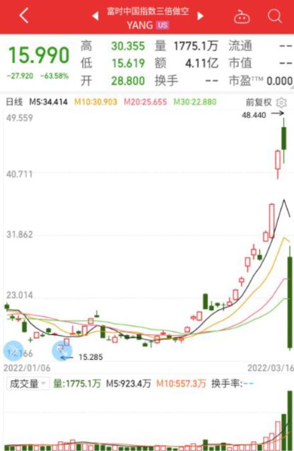 值得注意的是,富时三倍做空中国指数暴跌63.58%。